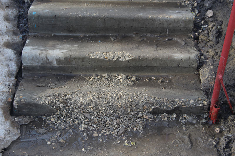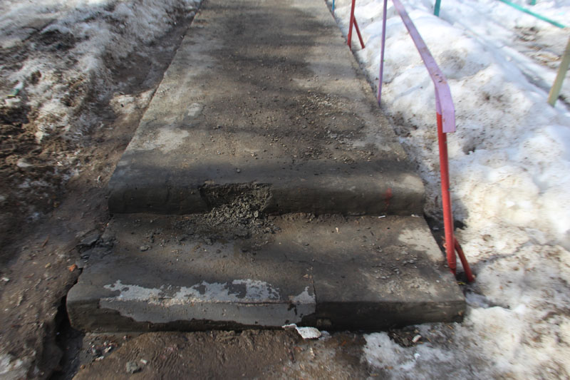 Радость местных жителей длилась недолго, лестница, которую в народе прозвали «губернаторской», начала разрушаться после первой же своей зимы. Бетонные ступеньки стали крошиться, бетон отслаиваться, а нижняя ступенька и вовсе почти развалилась. Вместо того, чтобы служить людям десятилетиями, конструкция грозит прийти в полную негодность уже через пару лет.
