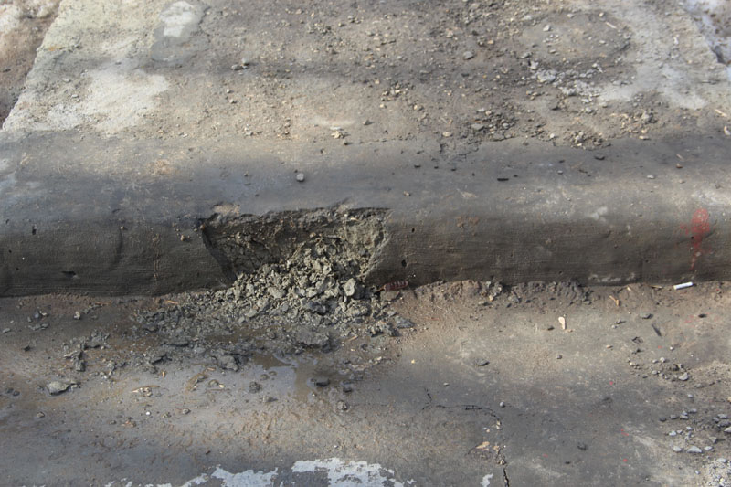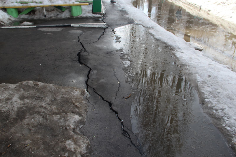 Происходит это возле знаменитого многоэтажного дома. Губернатор в прошлом году приезжал на Огородную 87а не случайно, а разобраться, почему двор, отремонтированный в 2016 году, начал разрушаться. После того как губернатор отпрофилактировал ответственных за ремонт чиновников, работы во дворе переделали и положили ранее отсутствующую пешеходную дорожку. О том, что в текущем году она просела и во дворе опять зияют здоровенные трещины, «Дорожный контроль» писал на прошлой неделе.
