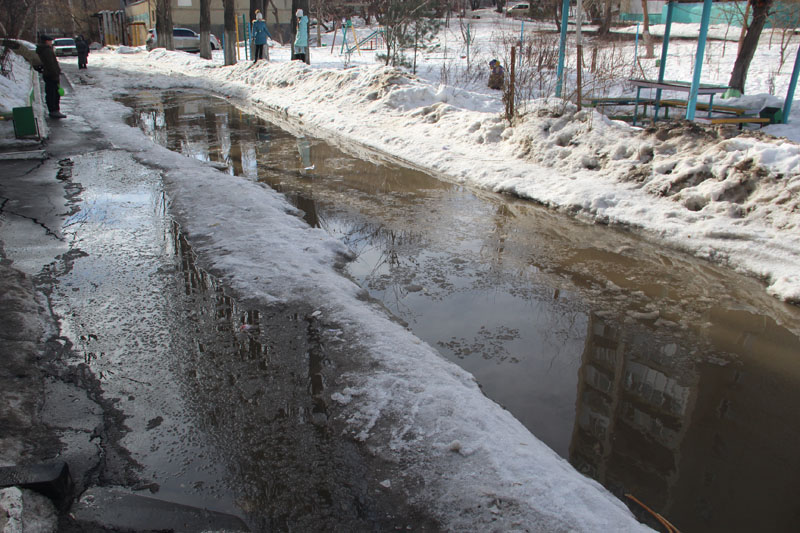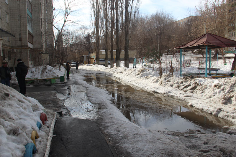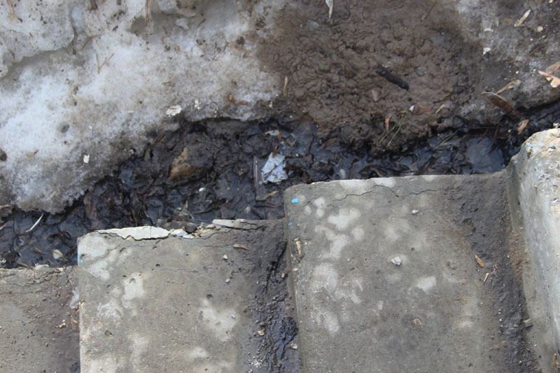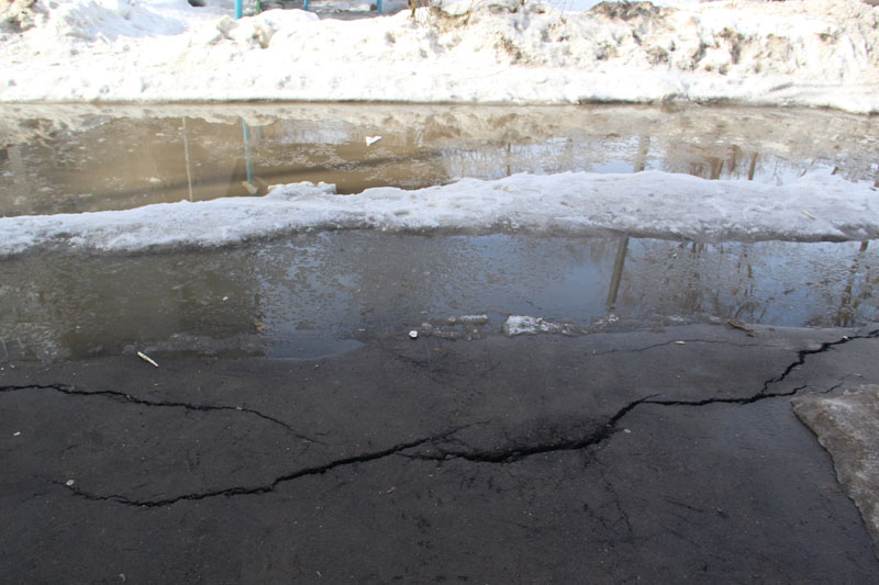 Теперь к разрушающемуся асфальту добавилась рассыпающаяся лестница, а учитывая, что на дворовом проезде стоит вода глубиной 20+ сантиметров, можно предположить, что вскоре могут появиться и новые сюрпризы.