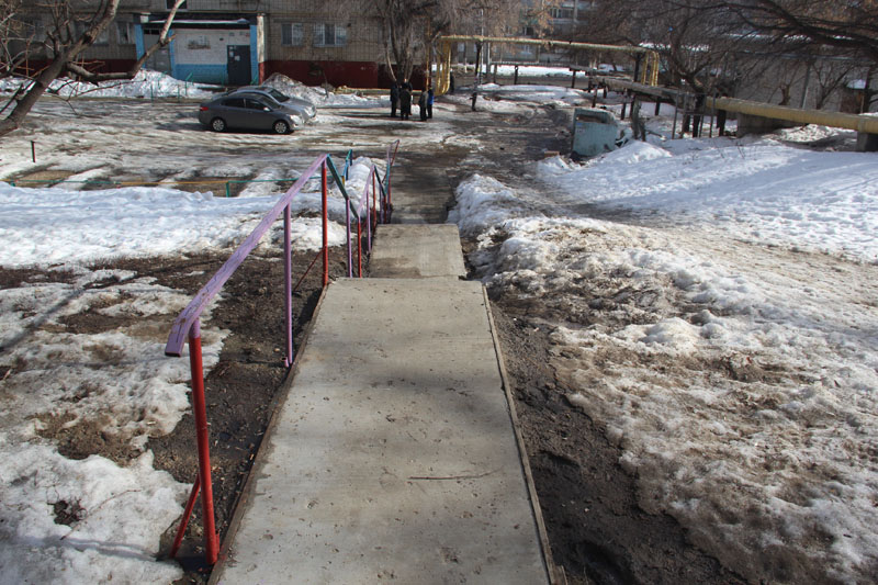 О том, что в ней остро нуждаются местные жители, глава области Валерий Радаев узнал в прошлом году на встрече с жильцами. Он пообещал посодействовать в решении проблемы, и вскоре на месте грязного склона появился долгожданный оборудованный спуск. Ведет он в сторону дороги по улице Огородной, и по нему заводчане спускаются к остановкам общественного транспорта.