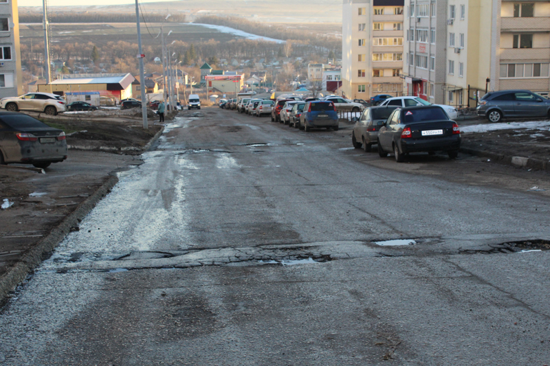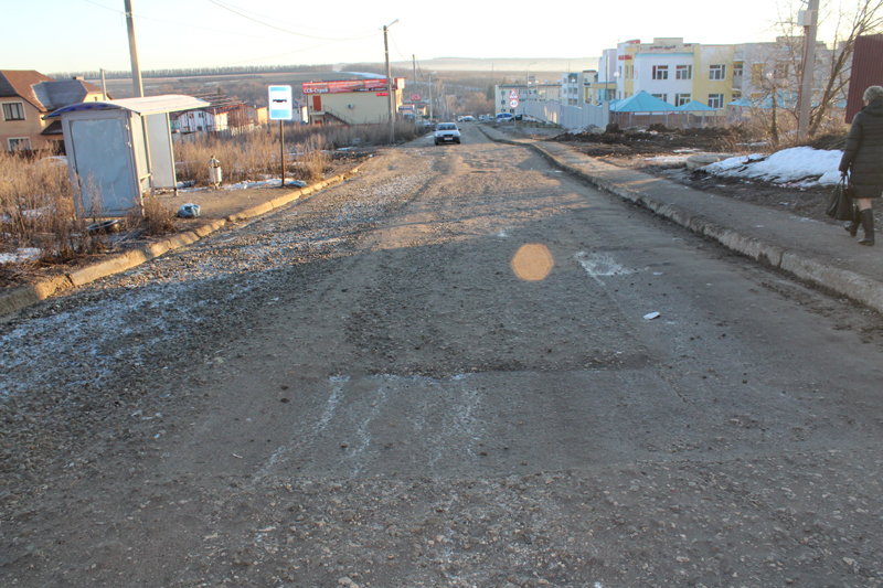 В районе ЖК «Цветочный» асфальтовое покрытие и вовсе заканчивается, из-за чего автолюбители и общественный транспорт вынуждены ехать по бетонным плитам и нанесенному водой щебню, больше напоминающим гладильную доску, а не городскую дорогу.