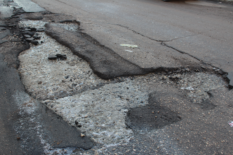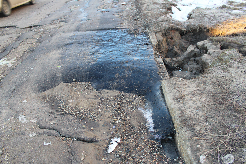 Асфальт по улице Исаева разрушен до бетонного основания