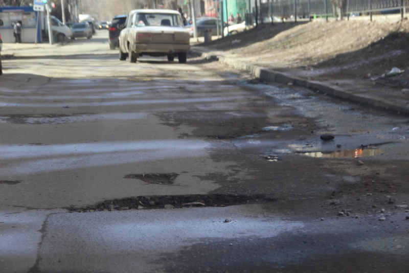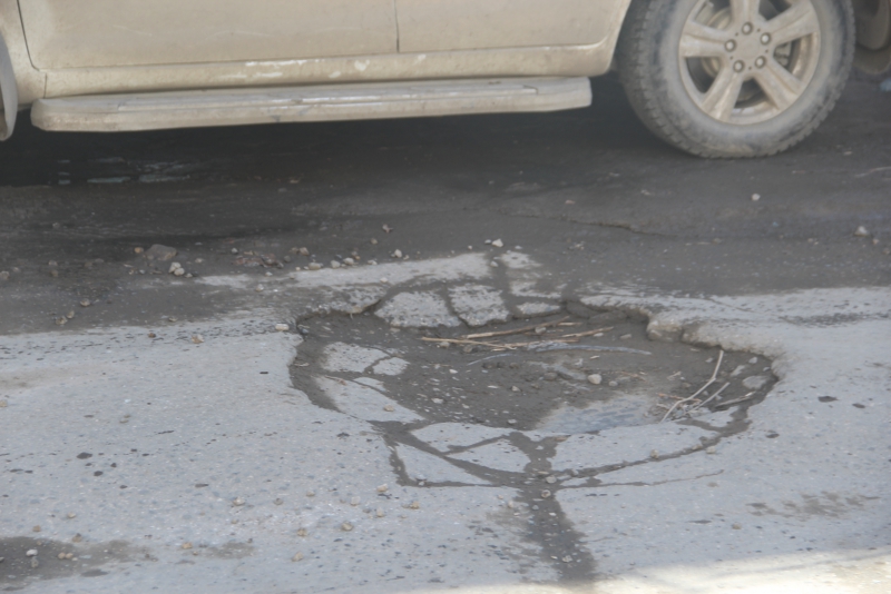 Машины с трудом переползают через препятствие, либо вовсе выезжают на встречную полосу, но и на ней их поджидают выбоины, хоть и меньшего размера.