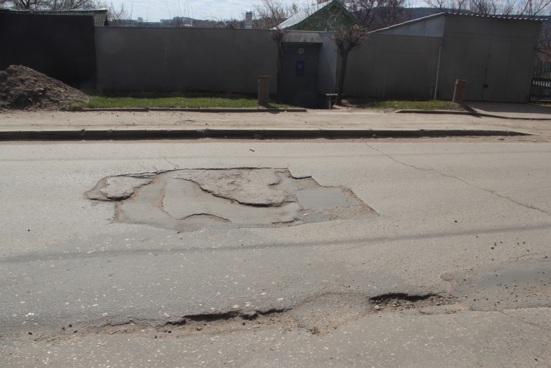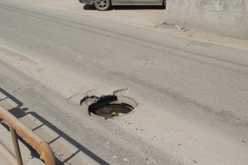 На месте некоторых латок уже образовались выбоины. Один из люков, находящийся возле поликлиники №11, и вовсе лишился крышки. Попадание в него грозит серьезными повреждениями автомобилистам, поскольку из него торчит часть водопроводной трубы.