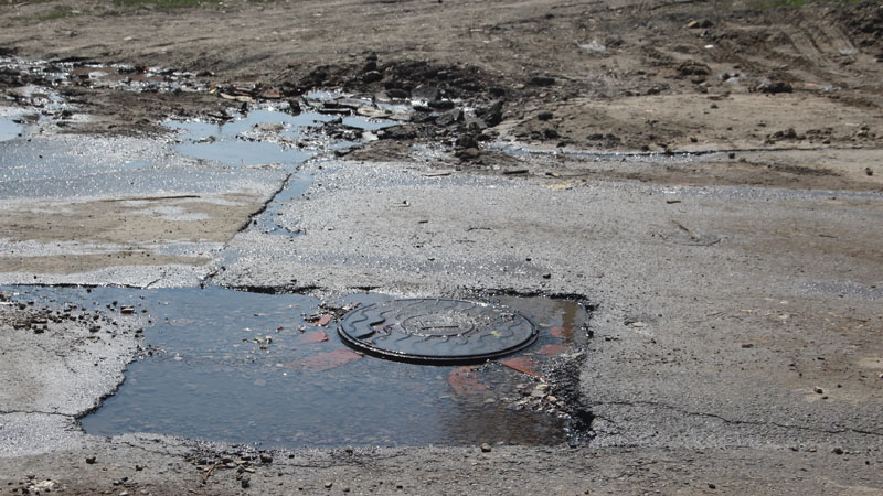Вода течет в этом месте постоянно, размывая асфальт, а зимой улица превращается в нагромождение торосов, даже выйти из подъезда бывает тяжело», - написал Александр.