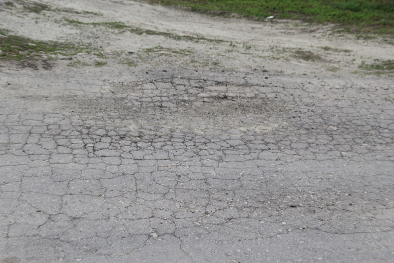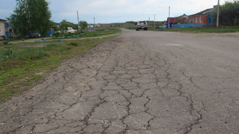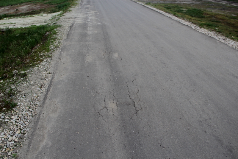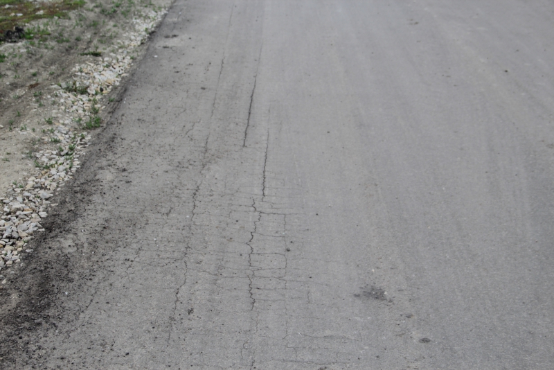 Как в последствии выяснилось, устройством этой небольшой дороги занимались аж в два этапа, в 2016 году работы вела фирма «Современные агротехнологии», в 2017 - «ГарантСтрой». Результаты работы были идентичными, на покрытии сразу же начала проступать сетка трещин, только на более старом отрезке они начали занимать значительно большую площадь.