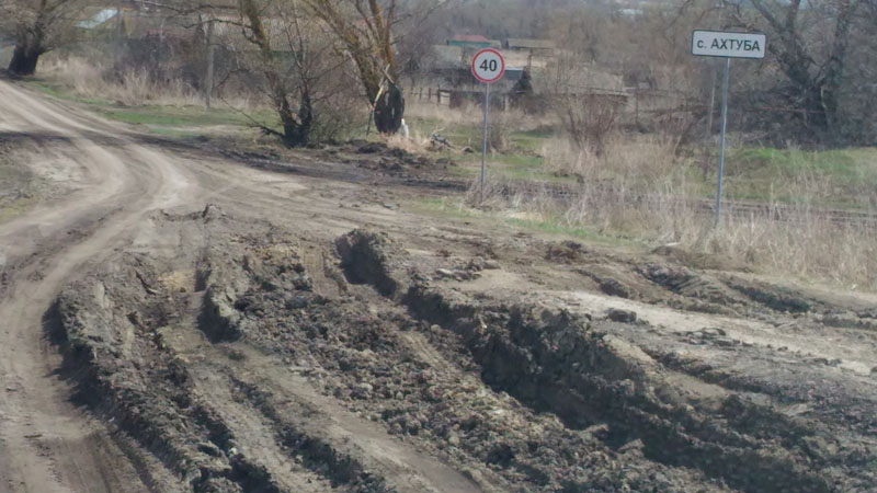 В прошлом году сотрудники «Дорожного контроля» уже сообщали о плачевном состоянии этой дороги, по которой к тому же проходит маршрут школьного автобуса. Дорога после Ахтубы в сторону Славновки, откуда везут на учебу детей, тогда вызвала ужас. Она представляет собой смесь щебня, грязи и кусков уцелевшего асфальта, где нормативную скорость сможет развить только военная гусеничная техника, а никак не школьный автобус. Но, как оказалось, ситуация за прошедшее время только ухудшилась. На присланных местными жителями фотографиях можно различить, во что превратилась эта дорога. Глубокие колеи и валы земли, оставшиеся после проезда грузового транспорта, преодолеть на легковом, даже полноприводном автомобиле просто невозможно. Жители сел Радушинки, Шалинки, Екатериновки и Славновки оказались просто отрезанными от социальных учреждений, расположенных как в Ахтубе, так и в самом Калининске.