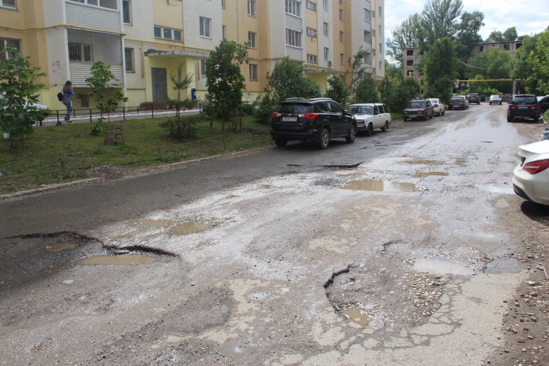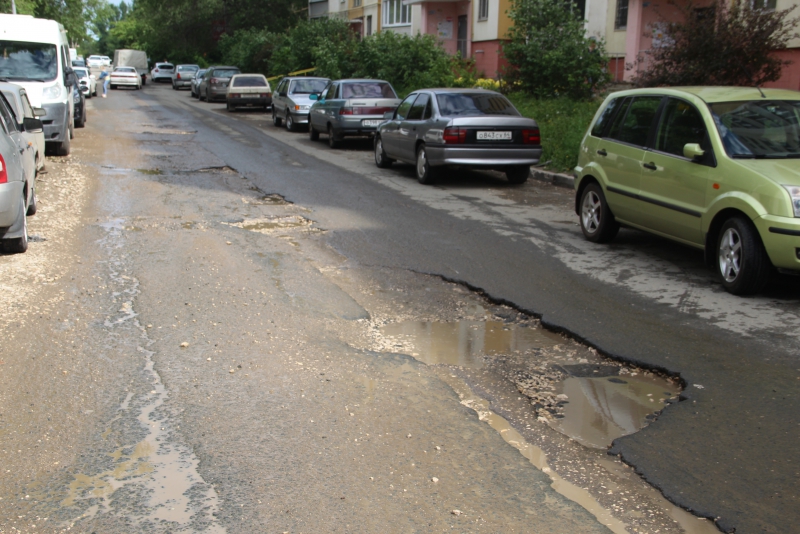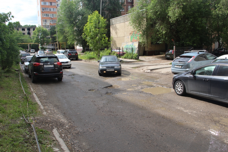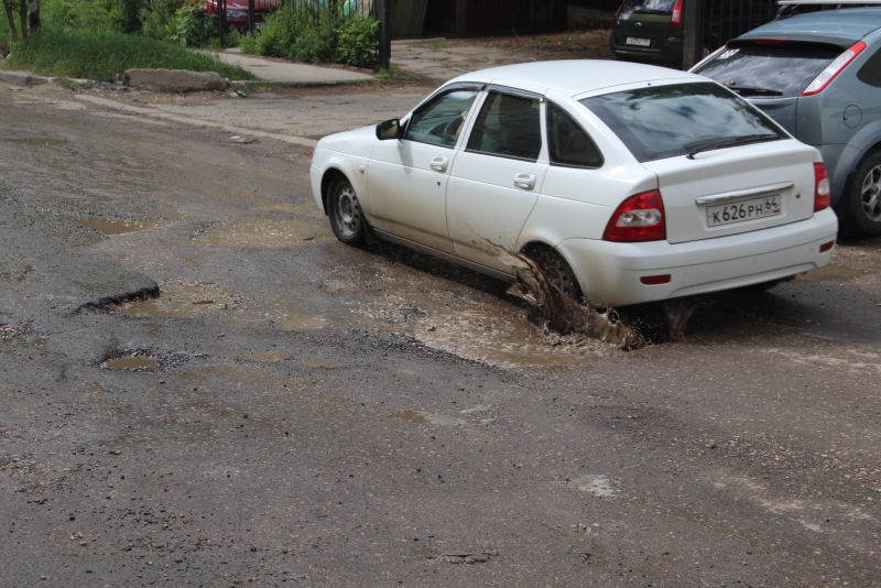 Можно выделить два наиболее разрушенных участка на этой дороге, которые особенно выделяются размерами и количеством выбоин. От улице Производственной до улицы Лебедева-Кумача глубокие выбоины заняли почти всю ширину проезжей части. Многие из них образовались рядом со смотровыми колодцами, выступающими острыми краями над разрушенным покрытием. Даже на широкой дороге порой не остается места для объезда препятствия, из-за чего образуются заторы, пока встречные потоки машин не разъедутся по наиболее безопасным маршрутам. Нетерпеливые водители рискуют ехать по ухабам, проваливаясь в них колесами и ударяясь днищем о края ям.