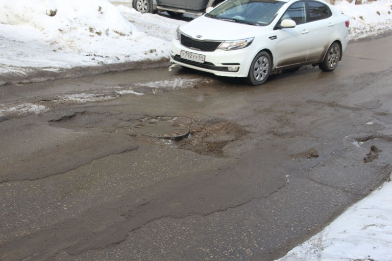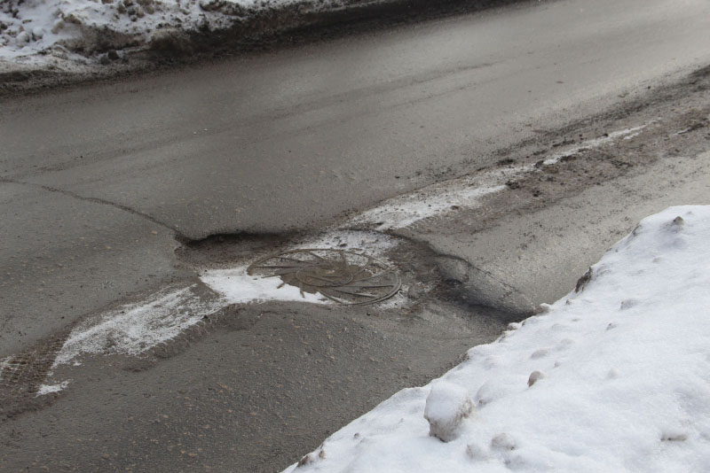 Несмотря на то, что согласно ГОСТу Р 50597-93 такое нарушение должно устраняться в течение суток с момента обнаружения, после нашего первого сообщения прошло два года. Вокруг люков активно разрушался асфальт, из-за чего в некоторых местах всю ширину проезжей части заняли выбоины.