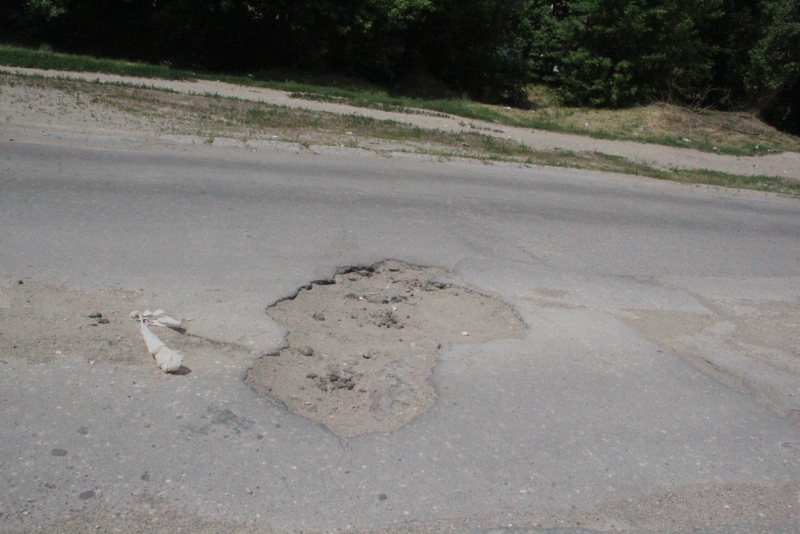 Многочисленные выбоины появляются на этой широкой дороге с завидной периодичностью. Устранять их пытаются ямочным ремонтом, которого хватает лишь на несколько месяцев.