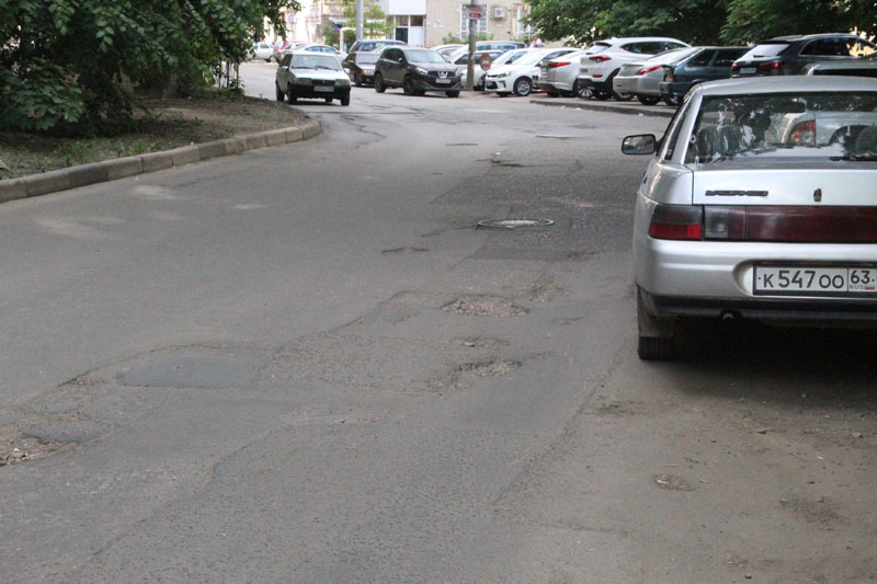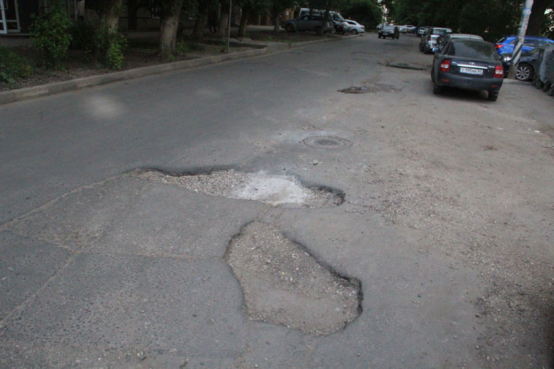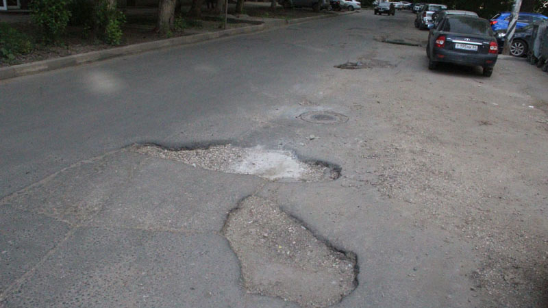 Проезжая часть улицы Железнодорожной во Фрунзенском районе Саратова покрылась многочисленными выбоинами. Глубокие ямы уходят в основание дороги, а в ширину часто перекрывают одну из полос для движения.