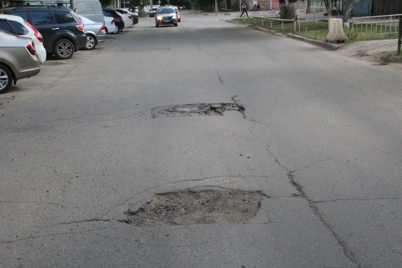 Глубокие выбоины затрудняют проезд по улице Железнодорожной