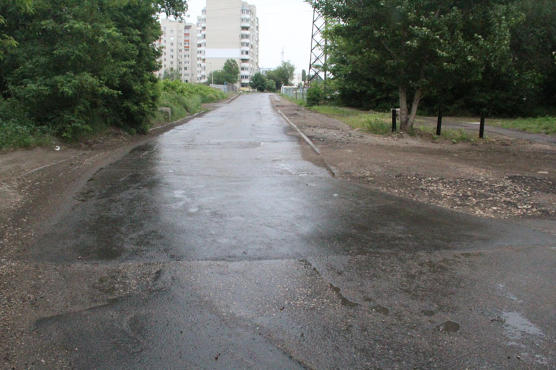 После ямочного ремонта, проведенного в этом месяце, безопасность движения по улице Тулайкова была восстановлена. Некоторые участки, наиболее разрушенные, были переложены картами, а накатанную колею по зеленой зоне рабочие отсыпали асфальтной крошкой.