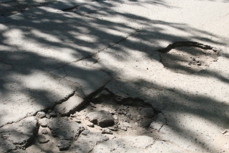Наиболее разрушенные участки, на которых ямы заняли почти всю ширину проезжей части, образовались у домов №20/32 и №60 по проспекту 50 лет Октября.