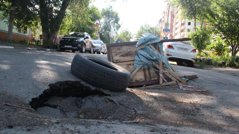 Не спешат устранять провалы и просадки на улице Зарубина перед пересечением с улицами Степана Разина, Университетской и Астраханской, о которых мы сообщали две недели назад. Опасные перпятствия, которе могут привести к серьезной поломке автомобиля, даже не постарались обозначить и огородить.