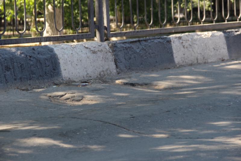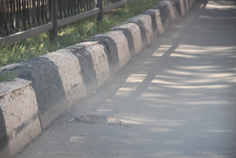 Дополнительное затруднения водители испытывают из-за наличия выбоин и выступающих над асфальтом остатков металлических столбов. При этом из-за колейности, объехать их значительно труднее.