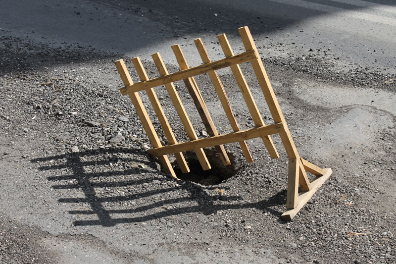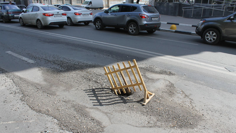 Провал образовался на улице Рабочей, недалеко от пересечения с Университетской, на отремонтированном в прошлом году участке дороге. Глубокую яму обозначили деревянным заборчиком, но никаких работ по устранению провала не ведется. Разрушения появились в том месте, где уже проводились работы по ремонту нового покрытия, возможно, изначально там была только просадка, которую пытались устранить.