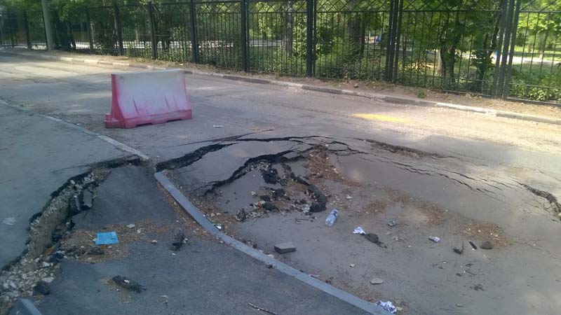 За минувший после нашего первого репортажа об этом провале месяц ситуация никак не изменилась в положительную сторону, а края ямы только еще более обвалились. «Покрытие на этом участке было восстановлено в первых числах мая, но этого ремонта хватило ровно на одну неделю: в месте, где была яма, полотно прогнулось, образовались трещины, и сейчас там поставили знак, потому что есть опасность падения автомобиля», - рассказала «Дорожному контролю» Наталья.