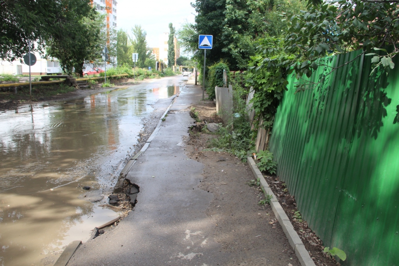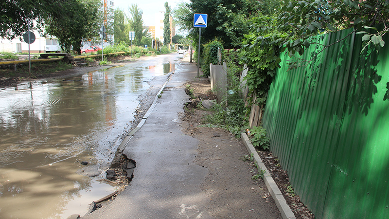 Пешеходам приходится пробираться по краю ямы, либо выходить на проезжую часть, затопленную после дождей. «Скоро начало учебного года, а попыток произвести ремонт за это время на данном участке так и не наблюдалось», - написали в редакцию обеспокоенные местные жители.