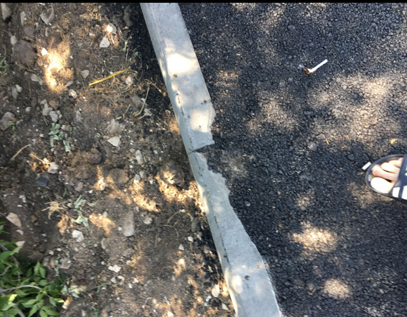 «В городе Ершове продолжается строительство тротуара по улицам Юбилейная, Некрасова и Мелиоративная, который не выдерживает никакой критики. Бордюрные блоки просто ставятся в землю, высота тротура относительно земли разная, бордюры установлены криво, поколотые бортовые камни присыпают сверху асфальтом, сам асфальт крошится. Жители в шоке от безнаказанности ответственных сотрудников Администрации района, которые, несмотря на письменные жалобы жителей, принимают эти работы», - отмечается в электронном сообщении, присланном Константином.