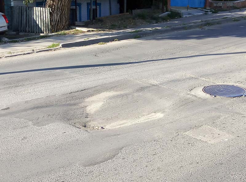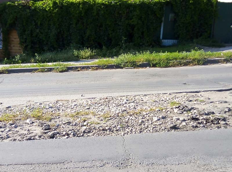Провал, появившийся в ноябре прошлого года, продолжает разрастаться во все стороны. Его неоднократно пытались засыпать, но яма снова возвращалась, лишь увеличиваясь в размерах. Последние месяцы никаких попыток исправить ситуацию и вовсе не предпринималось, на нанесенной потоками воды грязи, по середине дороги уже начала пробиваться свежая трава, и к следующему году может образоваться полноценная клумба.
