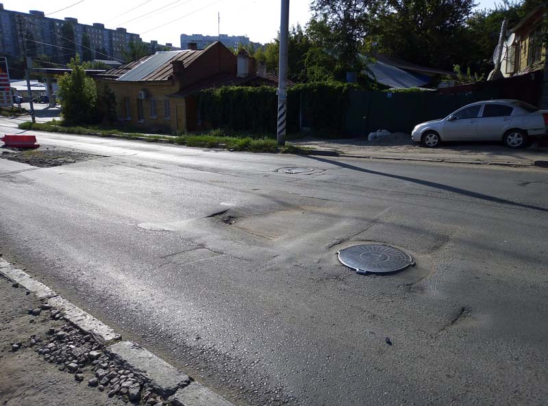 На улице Вознесенской скоро уже год, как не могут восстановить безопасность проезда для авторанспорта.