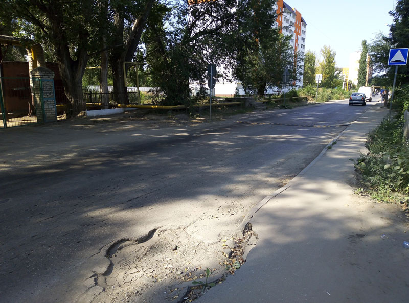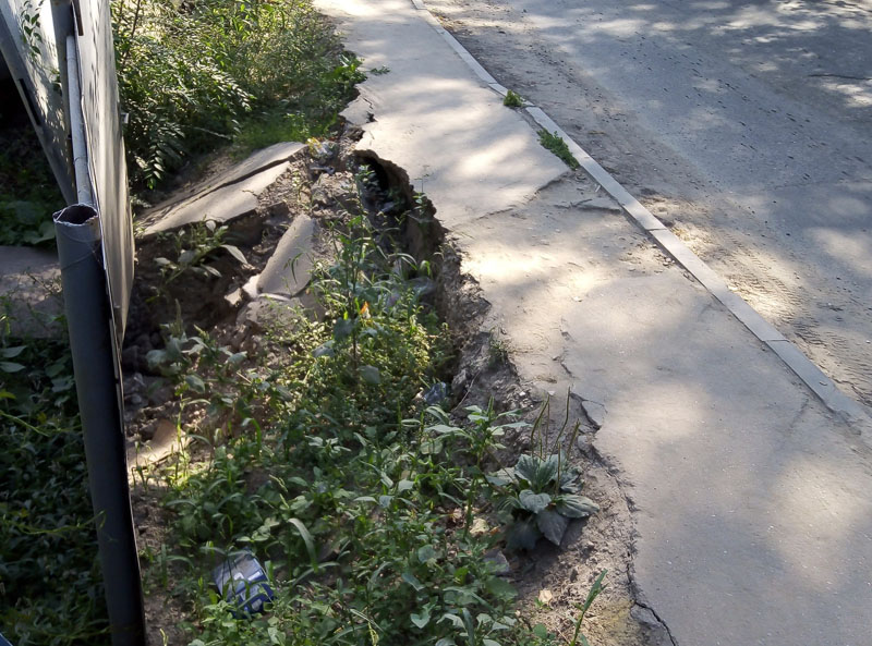 В конце мая «Дорожный контроль» впервые написал об обвалившемся тротуаре на улице Производственной в Ленинском районе Саратова. Пешеходы были вынуждены выходить на проезжую часть, чтобы обойти образовавшуюся яму.