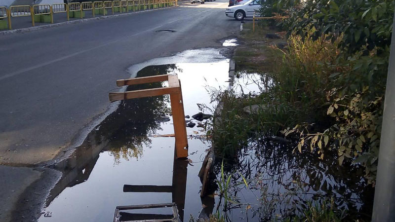 «Неделю назад на улице Челюскинцев, напротив гимназии №4 забил высокий фонтан. Мы наблюдали, как спешно откачивают воду. Но эти работы не помогли: уже неделю здесь стоит лужа, под которой находится яма. Ее предусмотрительно обозначили деревяшками. Вода так и стоит на тротуаре», - написали саратовцы.