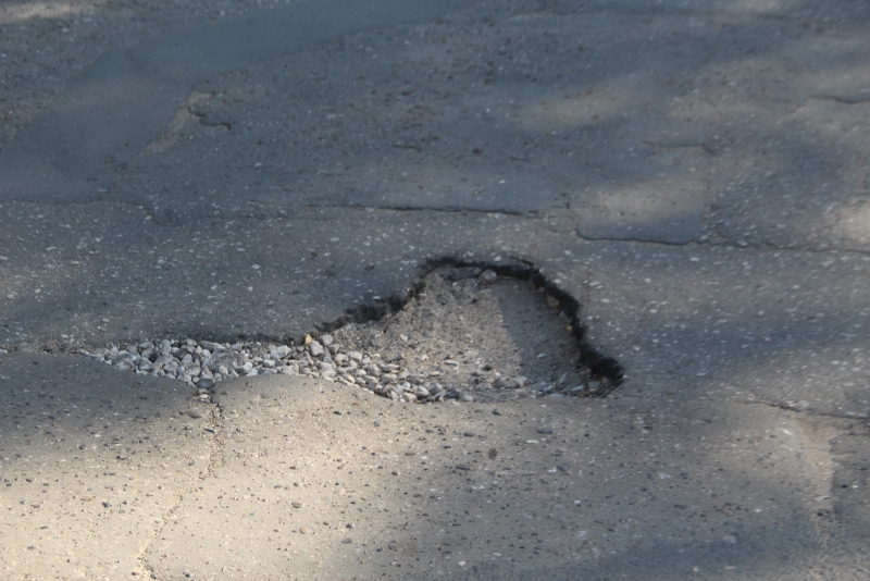Некоторые выбоины имеют правильную геометрическую форму, как будто их хотели залатать, но в последний момент передумали, оставив разрастаться.