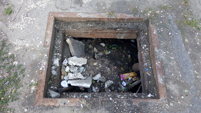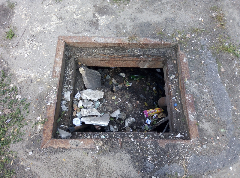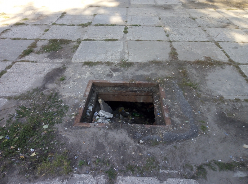 Возможно, в этом месте ранее находился дождеприемник, или это доступ к каким-либо иным подземным коммуникациям, давно заброшенным и забытым. Но на данный момент яма, расположившаяся на аллее, используется только как мусорка. Угодивший в нее пешеход рискует переломать ноги или напороться на торчащие в мусоре гвозди и арматуру.