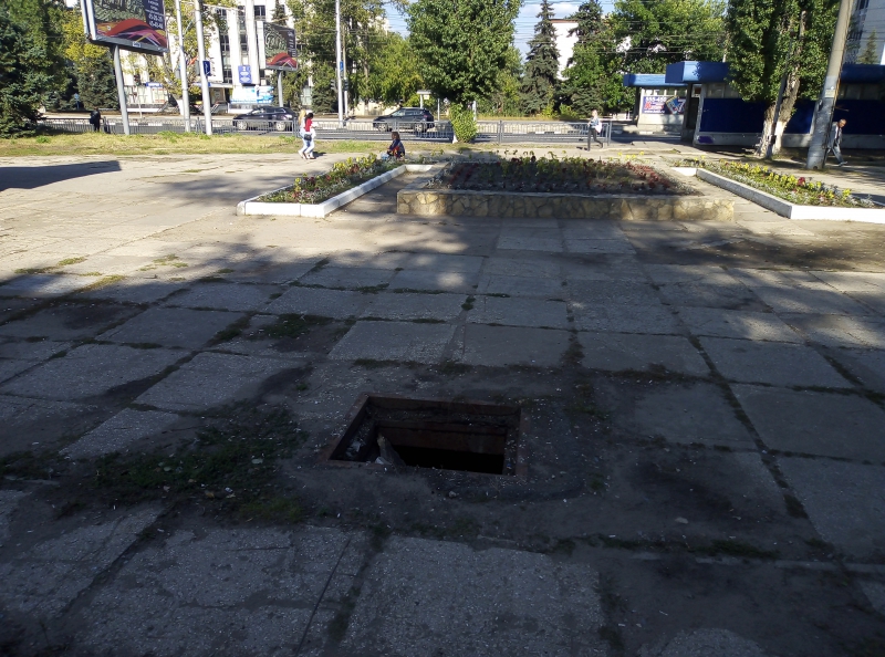 В сквере на 2-й Дачной стоит открытым заброшенный коммунальщиками люк