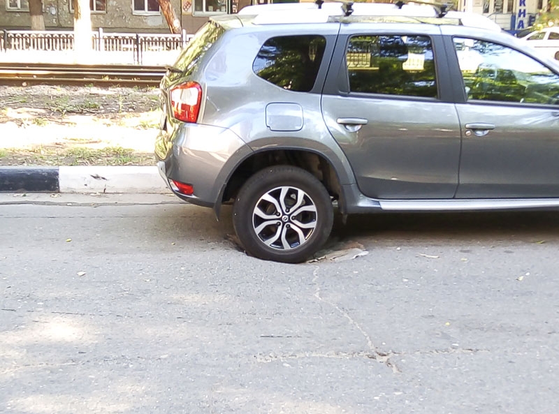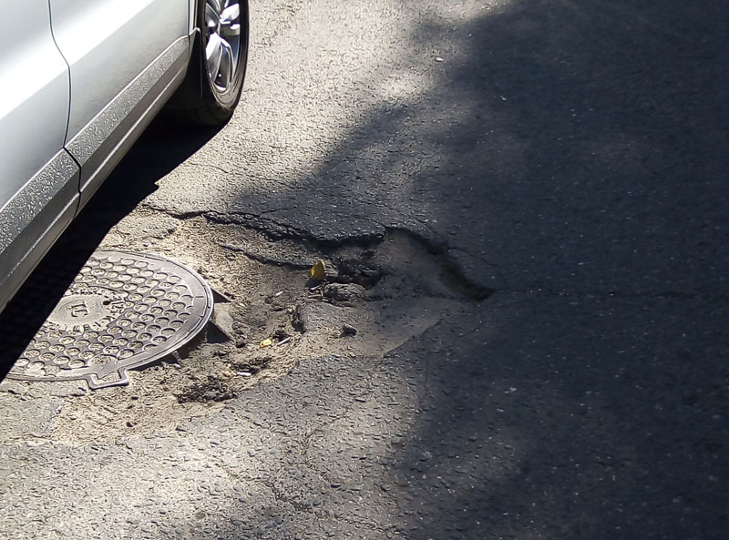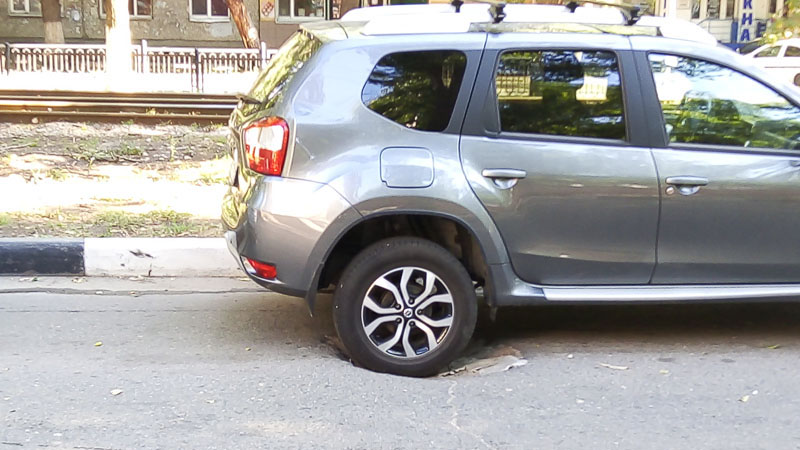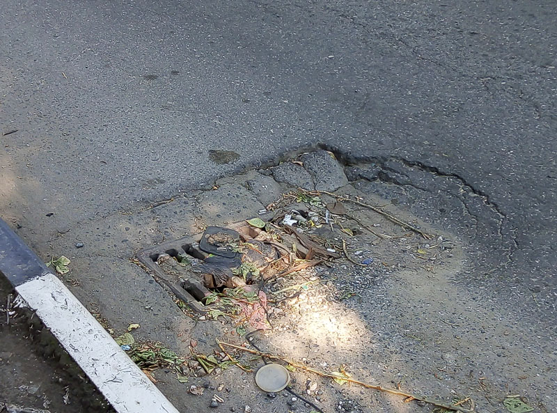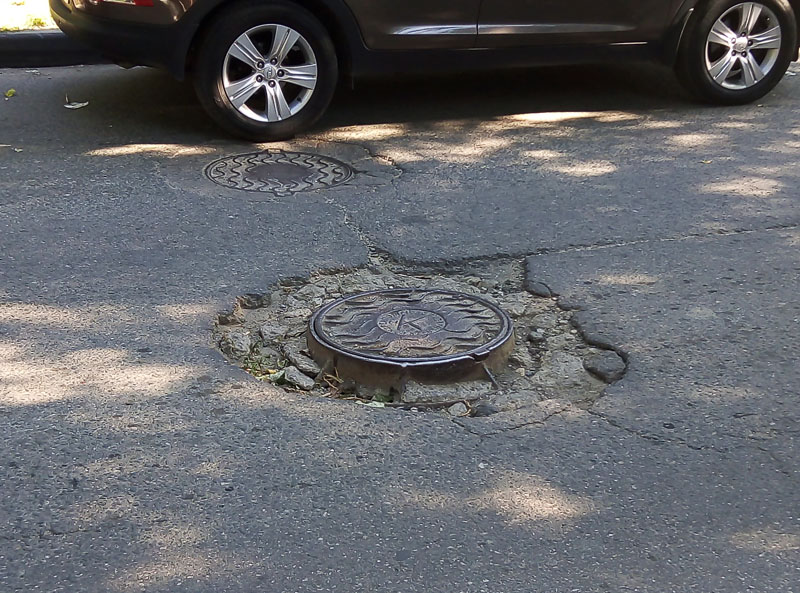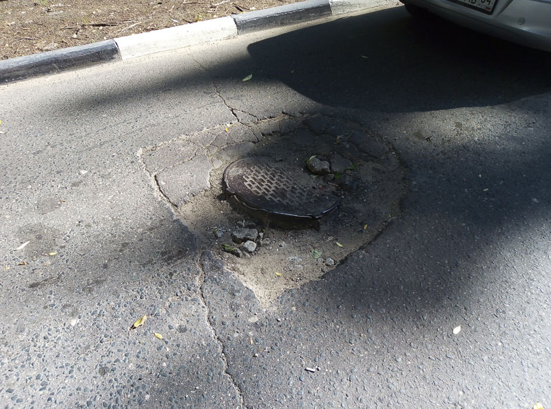 Также дополнительные трудности при движении по этому участку улицы Большой Садовой доставляют отклонившиеся от поверхности дорожного покрытия люки и дождеприемники. В некоторых случаях вокруг инженерных сооружений также образуются глубокие выбоины.