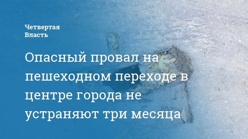 Опасный провал на пешеходном переходе в центре города не устраняют три месяца