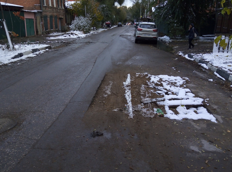 В дни, когда парковка разрешена по четной стороне улицы, места для объезда препятствий для машин не остается, из-за чего водители вынуждены ехать через раскопы.