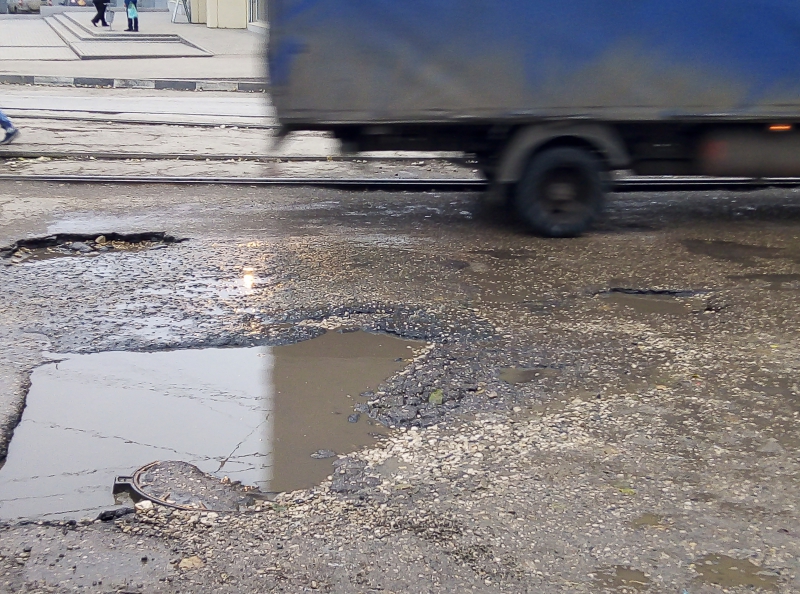 На улице Огородной выбоины затрудняют движение транспортных средств