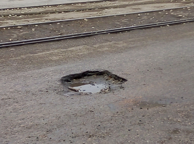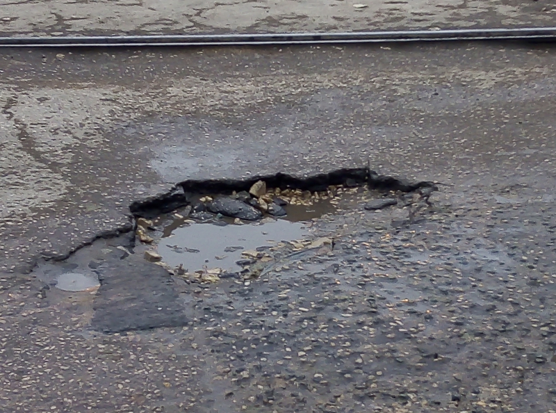 На улице Огородной, рядом с домом 147а, образовалось несколько глубоких выбоин значительно затрудняющих движение транспортных средств. В ямах скапливается вода, и угодившие в них машины норовят обрызгать ожидающих общественный транспорт пешеходов.