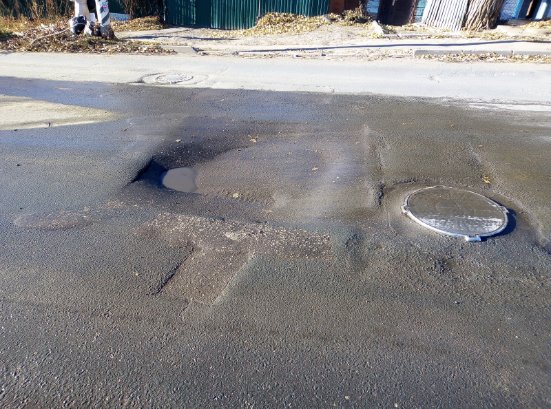 На улице Вознесенской провалился асфальт по центру проезжей части, рядом с пересечением с улицей Веселой.