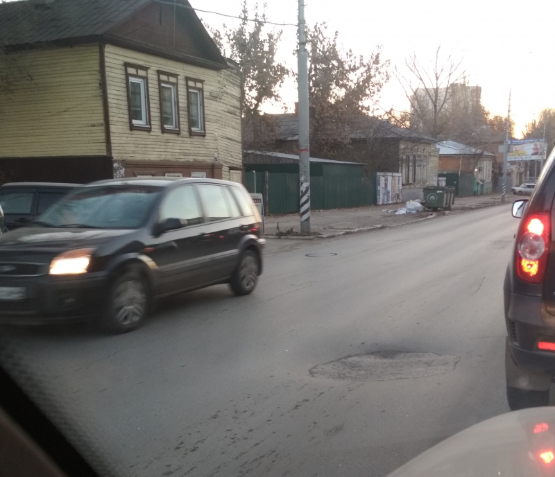 В редакцию «Дорожного контроля» пришла жалоба от саратовцев на просадку на улице Рабочей, у дома №112а. Она расположилась почти по центру дорожной части, затрудняя проезд в сторону улицы Университетской.