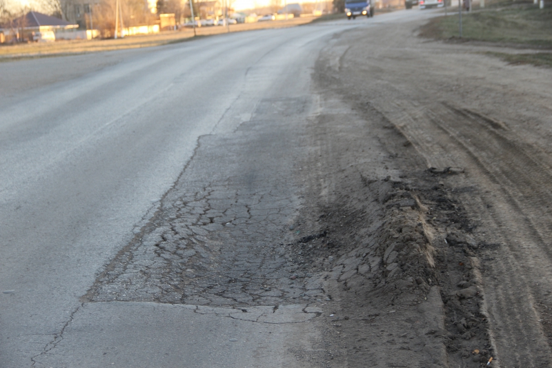 Отдельного внимания заслуживает состояние дорожного покрытия, некоторые участки которого уже сейчас требуют ремонта. Выпор, перекрывающий одну из полос движения, находится рядом с остановкой «Стоматология», также проседает покрытие по всей ширине проезжей части у заправки «ТНК», недалеко от амбулатурии образовалась крупная выбоина.