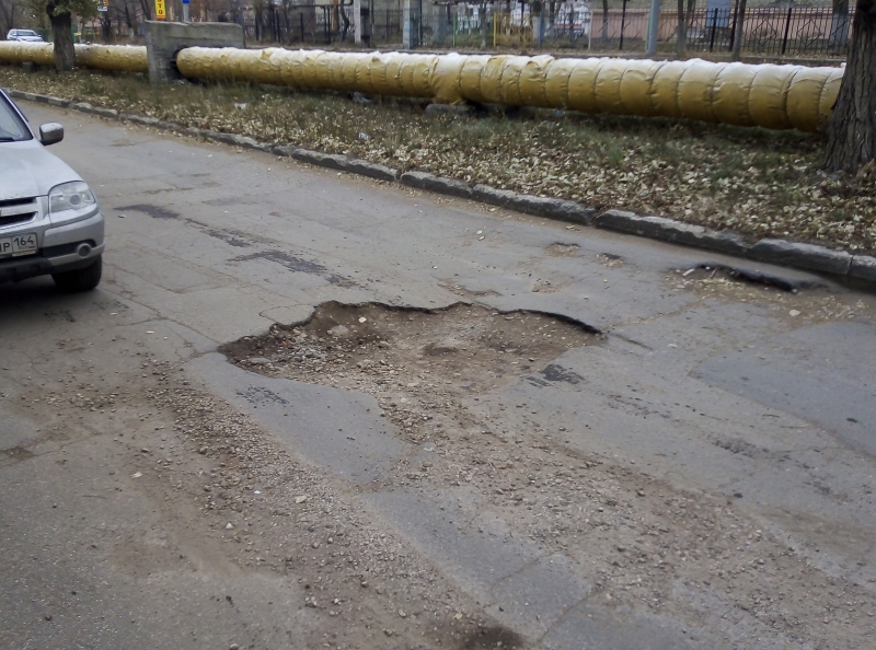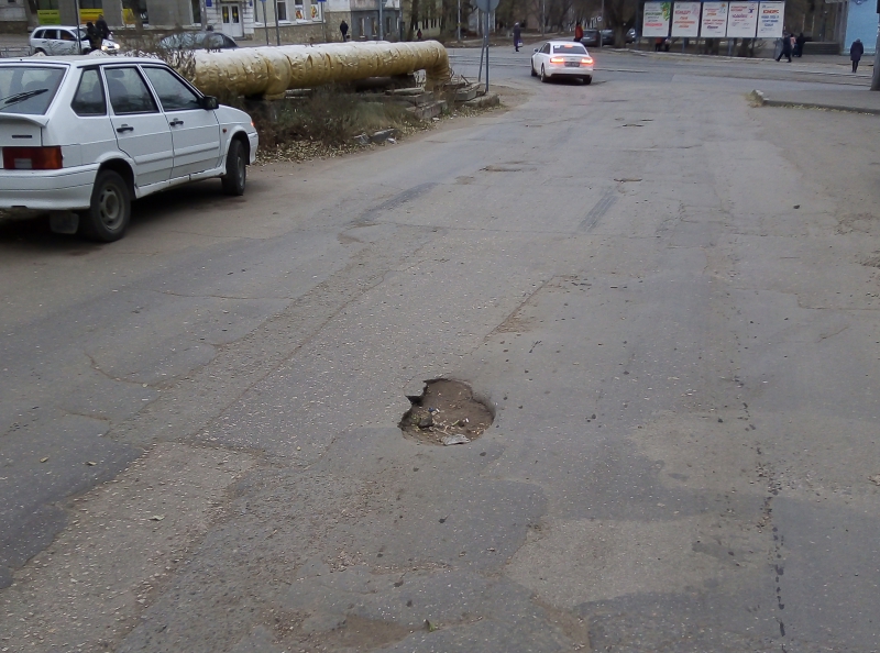 Наиболее разбитый участок находится рядом со стоматологической поликлиникой №1, в этом месте выбоины заняли всю ширину проезжей части. Автомобили, словно с обрыва, сваливаются в яму, для водителей, не успевших вовремя оттормозится перед препятствием, это может закончиться серьезным повреждение ходовой транспортного средства.