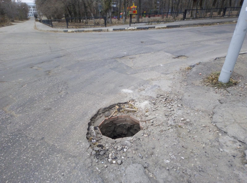 Отдельно стоит отметить незакрытый смотровой колодец на пересечении с улицей Заречной, почти незаметный для автомобилистов, но опасность несет для пешеходов, переходящих в этом месте дорогу в сторону остановки электротранспорта или направляющихся в недавно благоустроенный сквер у ДК «Химиков».