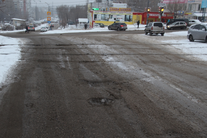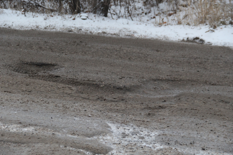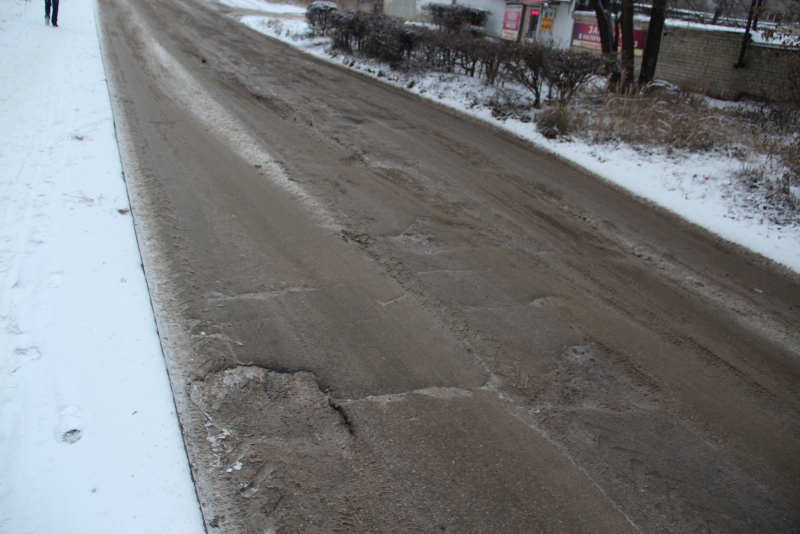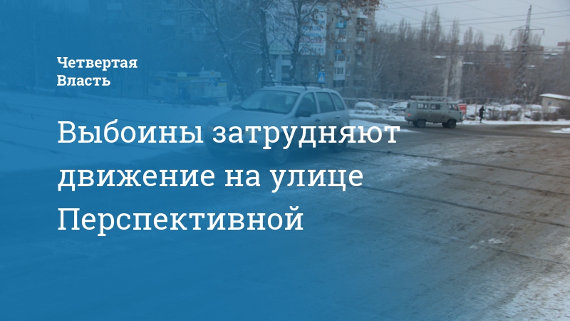 Участок улицы Перспективной между улицами Антонова и Блинова покрыт многочисленными выбоинами, которые не смог скрыть даже выпавший снег.