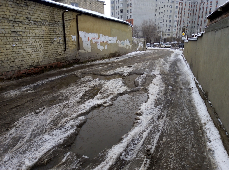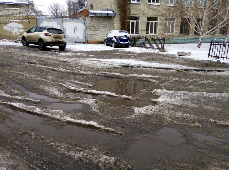 Участок улицы Миротворцева, между проездами Клочкова и 2-м Комсомольским в Октябрьском районе Саратова покрыт толстым слоем льда с многочисленными промоинами. Машины саратовцев, в том числе и внедорожники, с трудом преодолевают препятствия, бьются днищем и бамперами о ледяные надолбы. Следующее похолодание грозит и вовсе сделать дорогу непроездной.