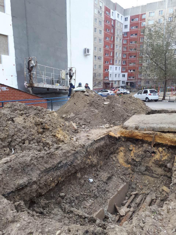 Женщина рассказала, что несколько месяцев назад в доме произошла аварийная ситуация с водой. Сотрудники МУП «ГАРС-05» ликвидировали аварию только спустя месяц, за это время весь подвал многоэтажки залило. После устранения повреждений прошло больше месяца, но во дворе до сих пор остаются раскопанные котлованы.