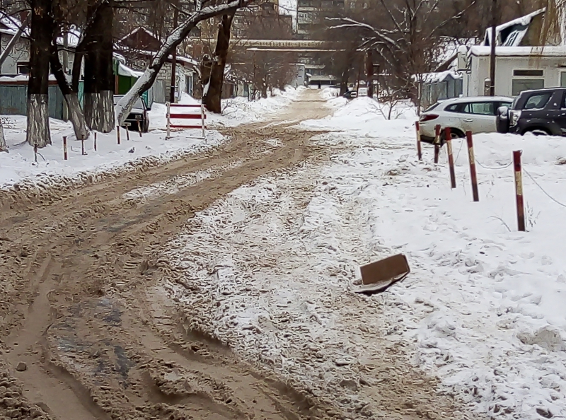 Толстый слой льда покрывает дорогу от Ново-Астраханской улицы до Ново-Астраханского шоссе. Машины застревают между ледяными торосами, либо, уподобившись сайгакам, прыгают с кочки на кочку, разбивая подвеску.