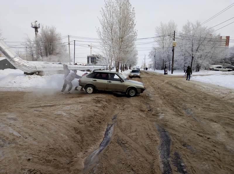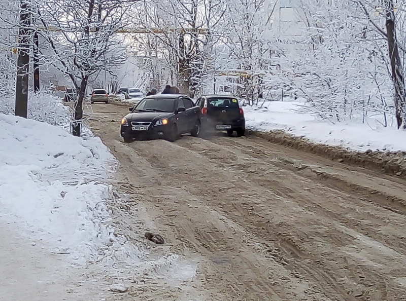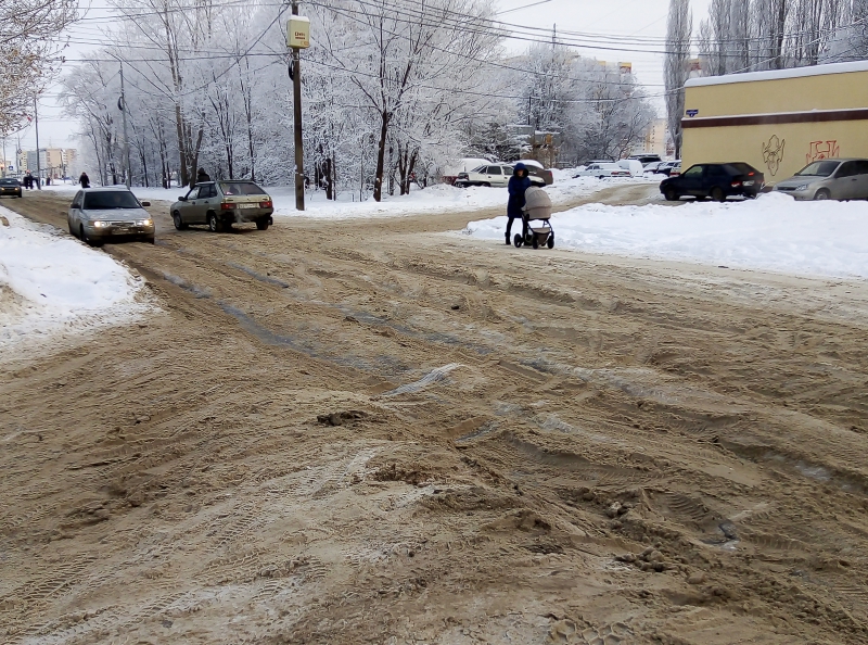 Эта небольшая дорога в Ленинском районе Саратова стала настоящим испытанием для водителей. Неосторожное движения руля выбрасывает машину из ледяной колеи на встречную полосу или тротуар, и хорошо, если в этот момент они пусты.