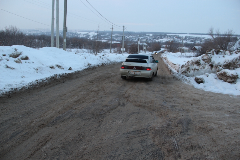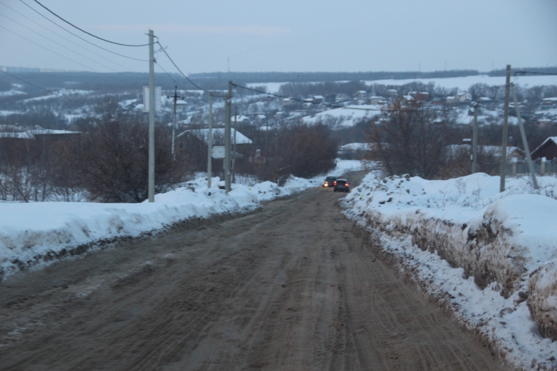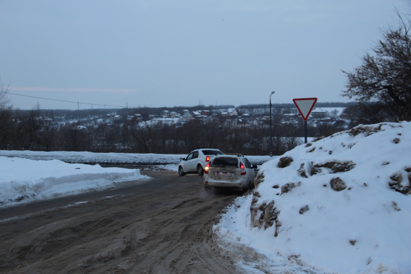 Заезд в поселок Юбилейный Саратова по улице им. Братьев Никитиных превратился в настоящее испытание для автолюбителей. Идущая под уклон обледеневшая дорога с глубокими колеями похожа скорее не на проезжую часть, а на трассу для скелетона, только двигаются по ней «снаряды» во встречном направлении.