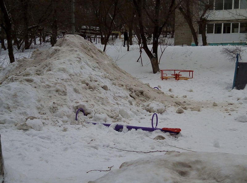 «Работники УК «Энергия – 1» и привлеченные ей подрядные организации по адресу Огородная 87а, решили трактором почистить снег. Дворника у нас не видно было очень давно, и двор занесло снегом. В результате они снегом засыпали часть детской площадки вместе с тропинкой и качелями. Но самое главное, что они трактором поломали три бордюра, а один выкорчевали. А ведь нам два года назад положили новый асфальт и бордюры в рамках программы «Наш двор». Двор они, кстати, так и не дочистили и убежали», - написал Александр.
