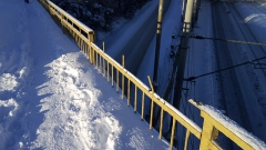 На прошлой неделе «Дорожный контроль» по жалобе читателей сообщал об опасном состоянии моста, связывающего проспект 50 лет Октября с Большой Горной. Из-за толстого слоя неубранного снега на пешеходной части сооружения перила стали настолько низки, что горожане рискуют свалиться вниз. После этой публикации мы решили проинспектировать все путепроводы города и, к сожалению, констатируем, что только 3 моста: на 3-й Дачной, Трофимовский и на Проспекте Энтузиастов (район Радуги) - очищены для передвижения пешеходов, остальные несут для них потенциальную угрозу. Высота ограждений, вдоль которых идут люди по заснеженным пешеходным зонам, в лучшем случае доходит до верхней части бедра, а кое-где и до колена.