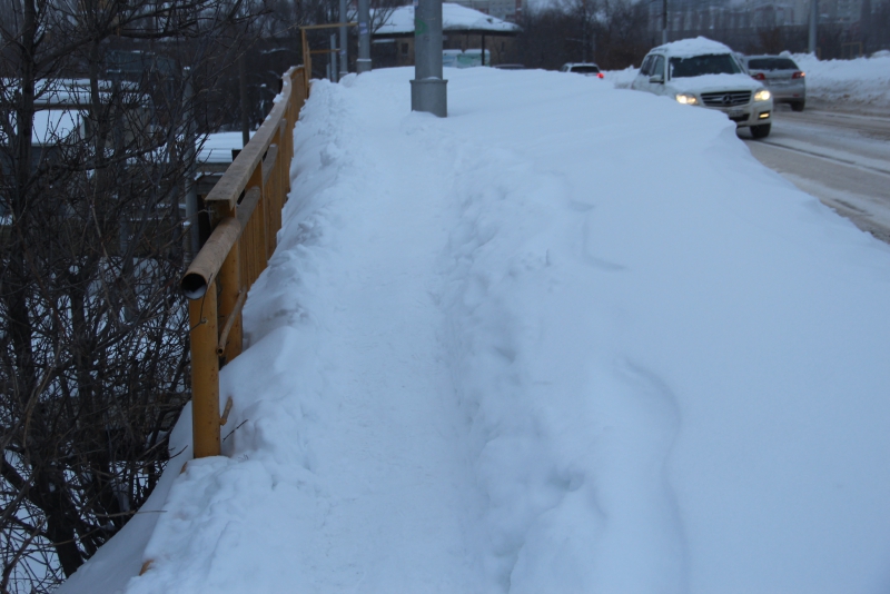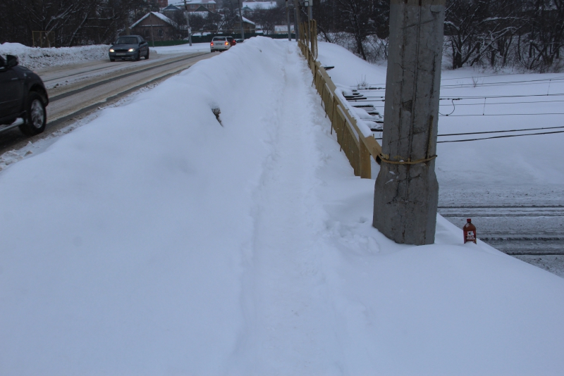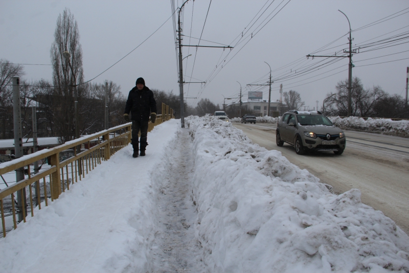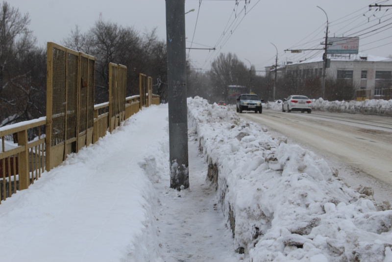 На мосту по улице Буровой тропинка пролегает вплотную к низенькому ограждению (уже почти по колено). При этом опасная тропа является единственным подходом к остановке общественного транспорта «8 дачная». На противоположной стороне путепровода пешеходная зона и вовсе перекрыта сплошным сугробом. Похожая ситуация наблюдается и на мосту на улице Тульской (ведет в Комсомольский поселок). Мучения саратовцев начинаются тут еще с пешеходного перехода перед мостом, где сначала приходится спрыгивать с сугроба на дорогу, а на другой стороне снова взбираться на сугроб. Прогулка по этим мостам для горожан превращается в настоящее испытания нервов и духа.
